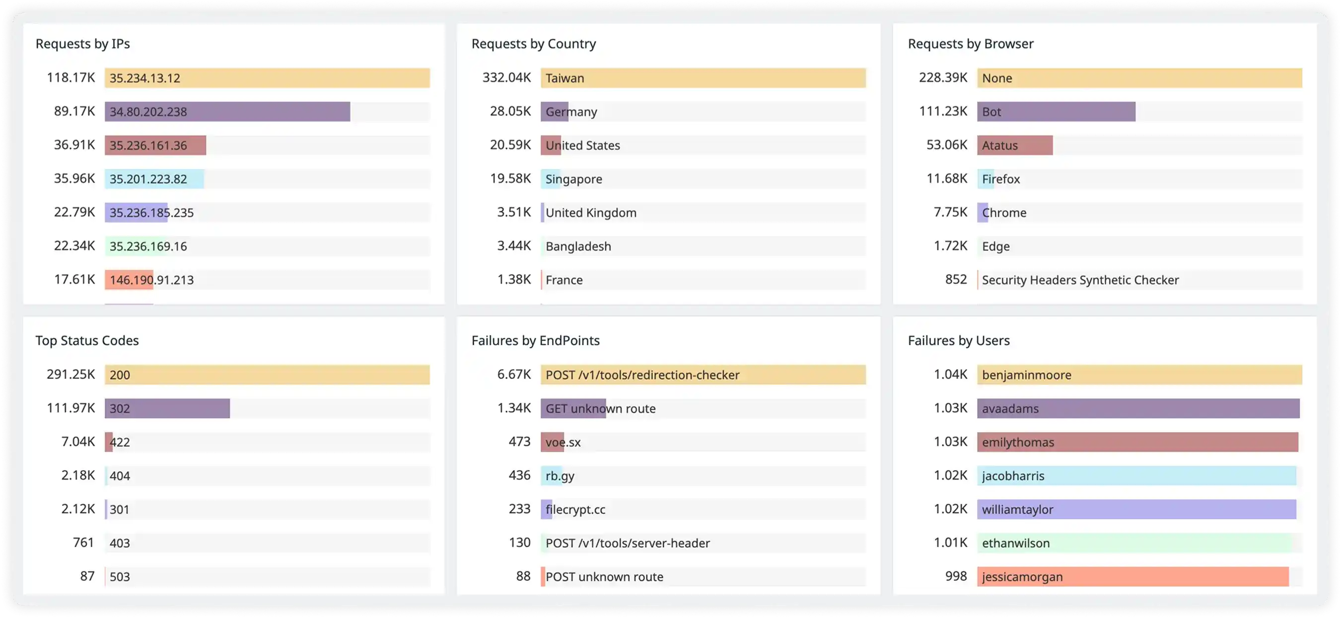 Log in to your Atatus dashboard to analyze trends, spot anomalies, and drill into traces. View breakdowns by endpoint, response status, geography, or custom attributes.